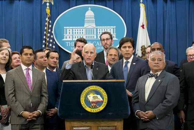 SACRAMENTO >> An almost surreal 2017 political scene was on display Monday in Sacramento: Republicans and Democrats, including Gov. Jerry Brown, standing on a stage together at a late-night news conference — celebrating a climate-change p